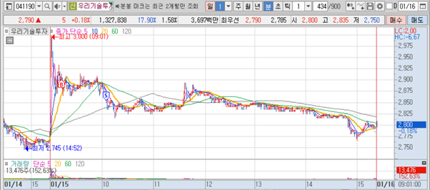 1. 우리기술투자(돌파, 손절)