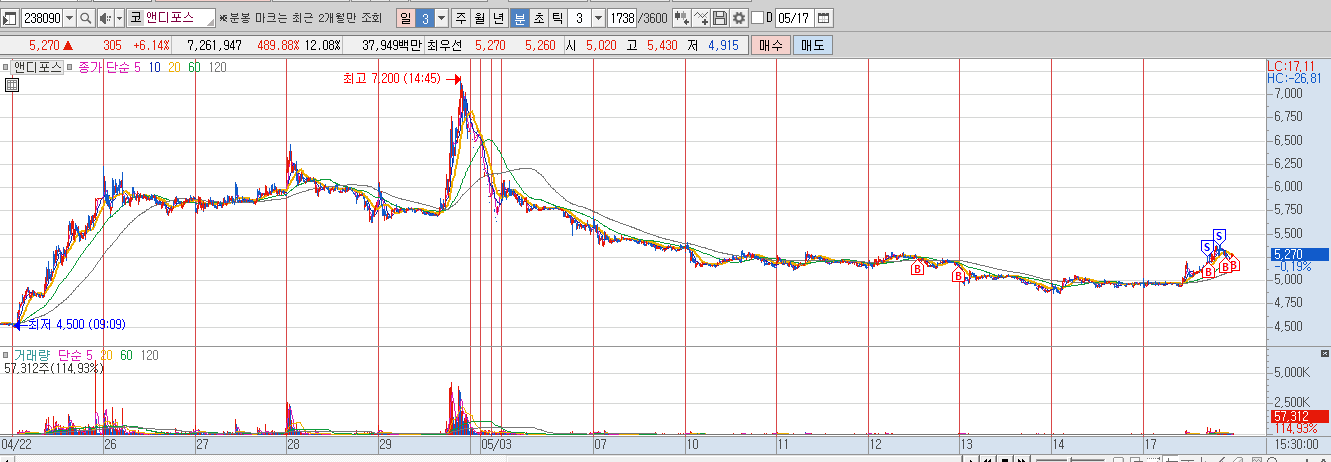 진단키트 관련주. 이전에도 끼가 좋은 모습을 보여줬다. 기준봉 세우고 한번 더 상승 이후에 크게 하락이후 다시 밑에서 턴해주는 모습. 5천원 후반대에서 6천원 정도는 갈 것으로 생각되어서 재매수.