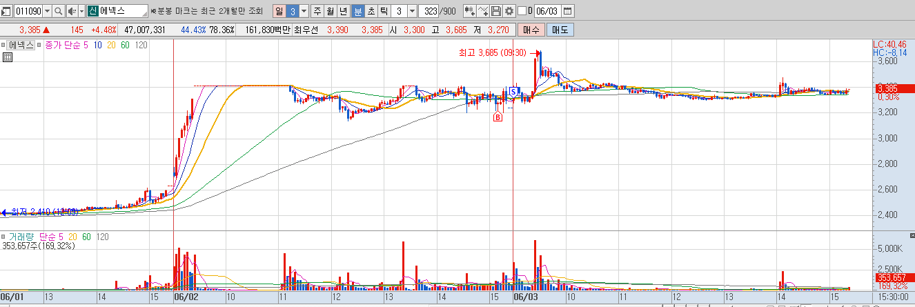 오랜만에 상따.. 시도. 일봉상 위치도 좋았고 (앞전 매물대 없음) 조금 더 갈만한 자리는 있을거 같아서 아래 지점에 대놓고 있다가 체결. 근데 상한가 못말고 결국 죽더라. 그리고 오늘 시가를 살짝 띄웠는데 거기서 또 한 번 밀고 그 다음에 위로 슛. 난 이미 쫄아서 시가 근처에서 전량 던짐.. 흑
