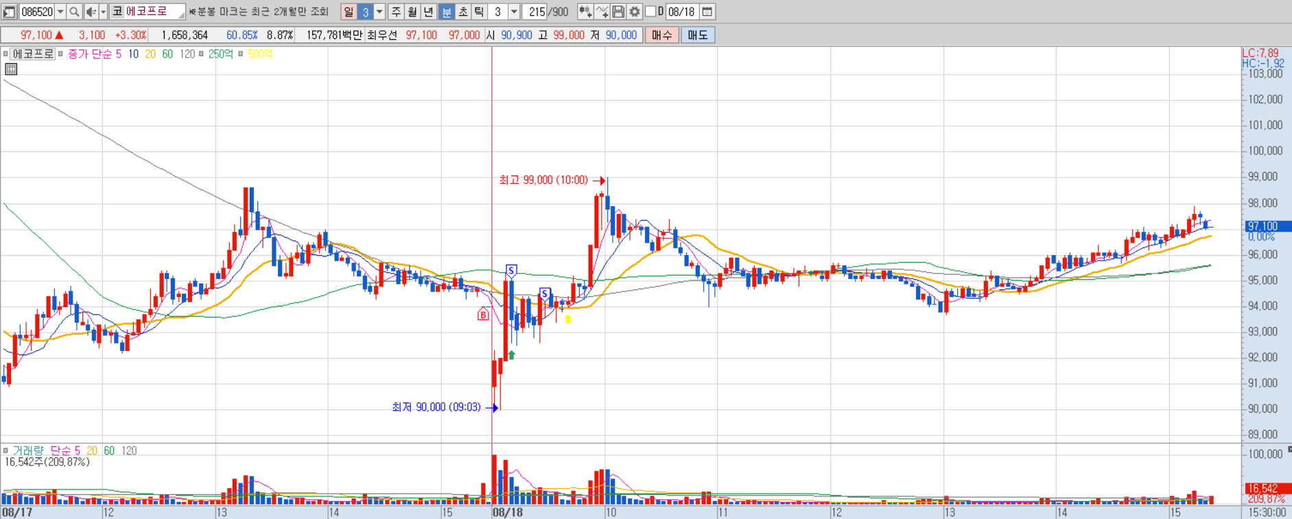 그냥 짤짤이.. 미리 걸어둔 곳에서 매수 후 추이보다가 매도. (고점을 뚫을 것 같진 않았음. 장 반등나오면서 다른 종목군이 상승하는거 보고)