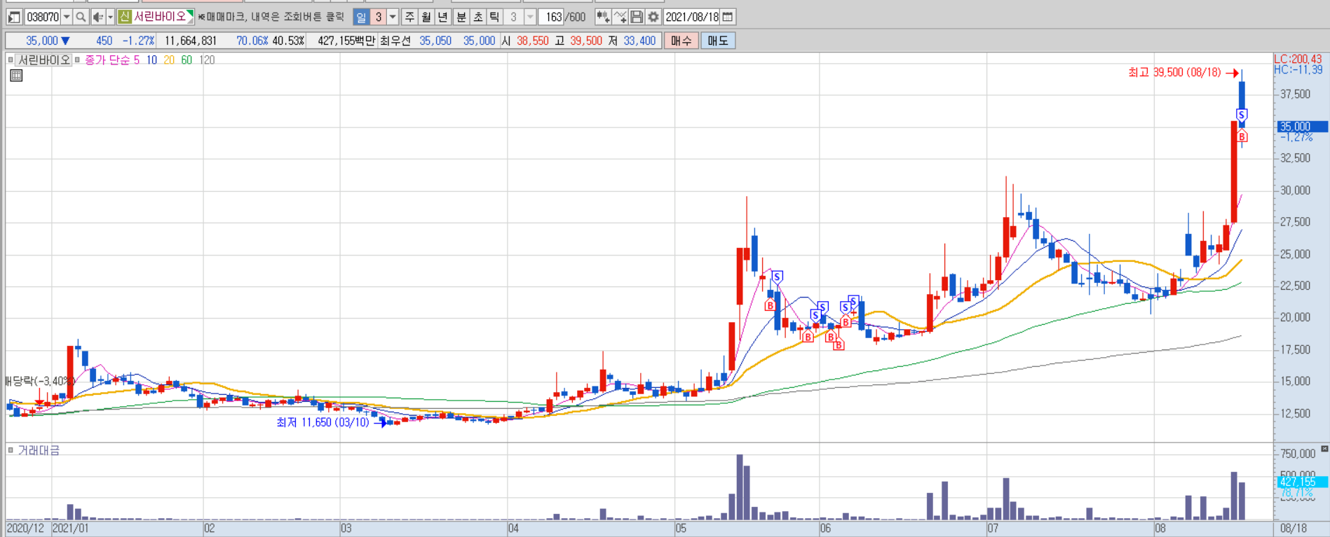서린이도 장중 짤짤이 후 종가베팅. 어제 장이 구데기였는데 얘는 상한가를 갔다..ㄷㄷ