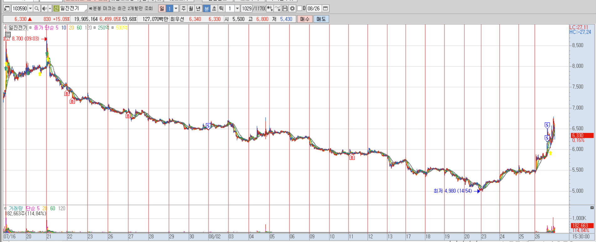 일진홀딩스?가 떡상하면서 전기도 같이 따라간듯.? 물려있던거 전량손절..ㅠ 다신 보지말자