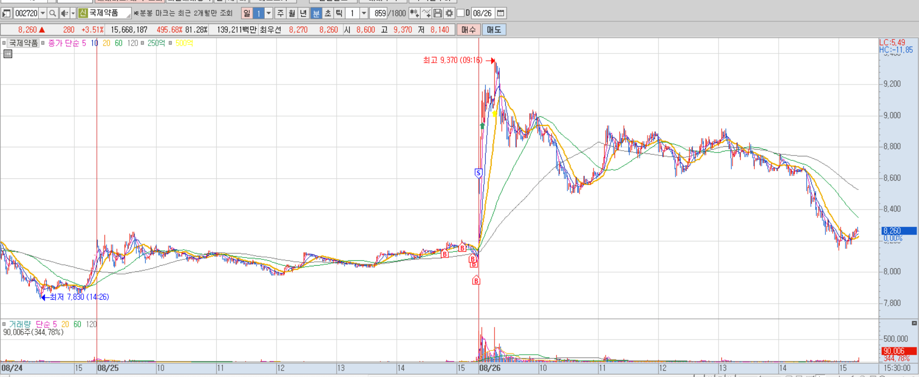 국약 어제 시외 +6%여서 시가 뜨는 곳에서 매도. 조금 더 갔지만 ㅠㅠ