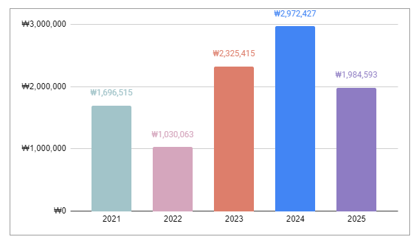 시장 상황에 따라 매년 수익이 달라지기는 하나, 역시 리스크가 가장 낮은 투자인 건 확실한듯!